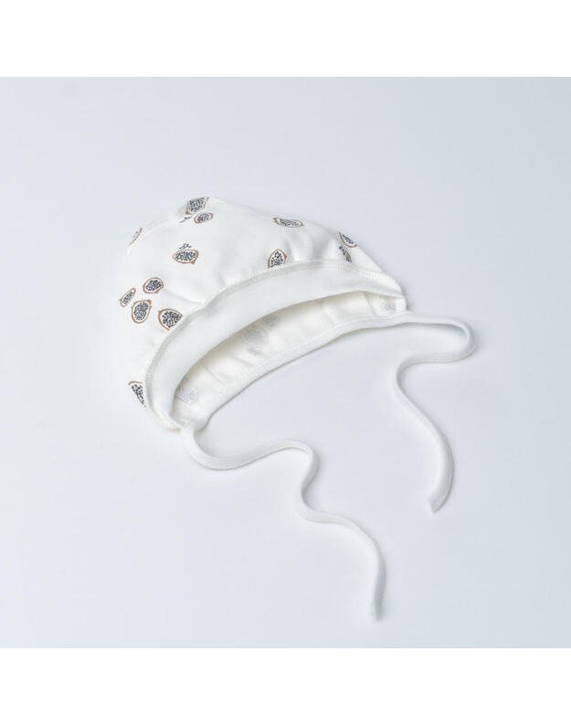 Plona, išvirkščiom siūlėm kepurytė naujagimiams iš kolekcijos "Bruno". Puikiai tinka į gimdyklą. Galima susikompletuoti kraitelį - rinkinuką į gimdyklą. Galimi dydžiai: 38, 40, 44cm. Sudėtis: 100% medvilnė.